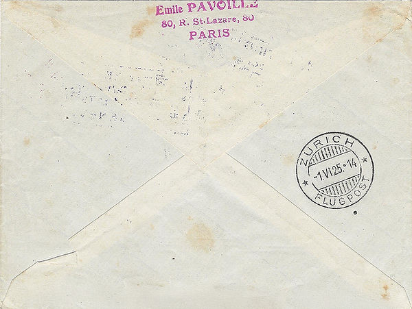 Lettre transportée par le vol Genève-Zürich organisé lors du Meeting aérien international de Genève. On y voit le cachet ainsi qu'une des deux vignettes officiels de l'événement. A noter que la vignette non-dentelée est une spécialité car elle est bleue-rouge au lieu de bleue-verte pour la valeur 50 cts.